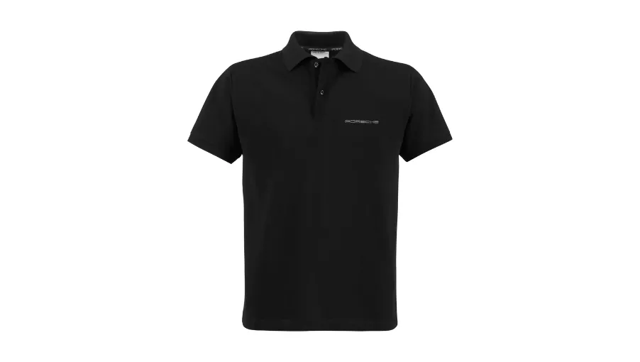 Acest tricou polo negru, cu un design elegant și minimalist, este marcat subtil cu inscripția Porsche pe piept și pe nasturi – o declarație de stil discretă, dar fermă.